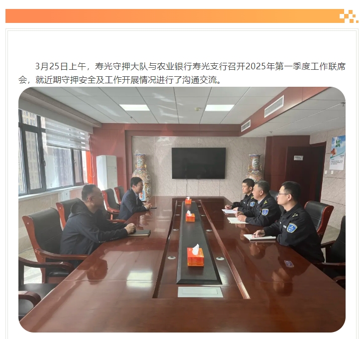 壽光守押大隊(duì)與農(nóng)業(yè)銀行壽光支行召開2025年第一季度工作聯(lián)席會(huì)